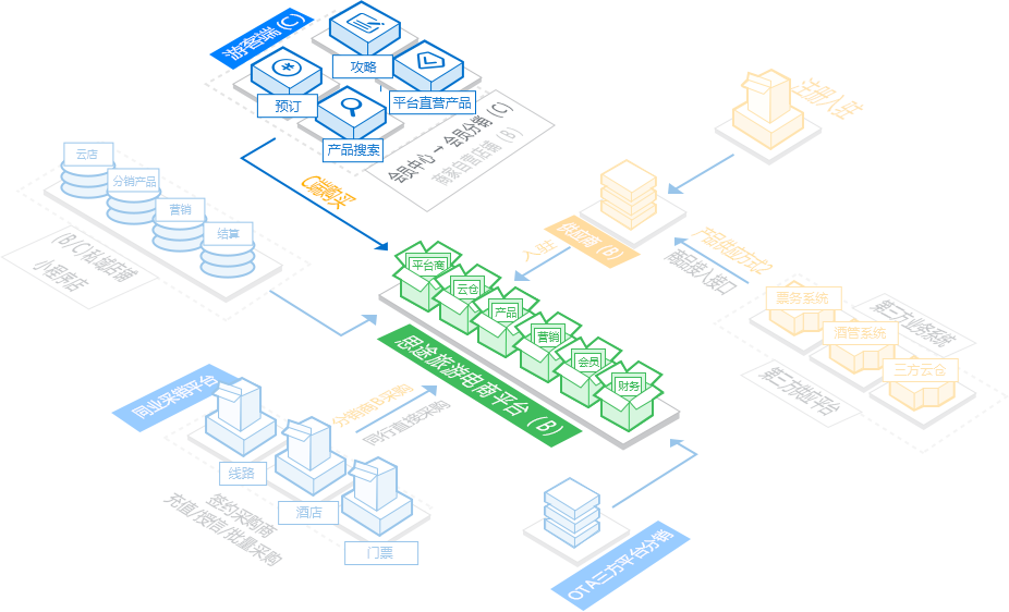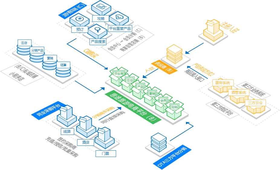 通過穩定的系統架構、靈活的擴展屬性,幫助中大型旅游企業提供專業、安全、高效、強大的電商系統,順利開展線上業務