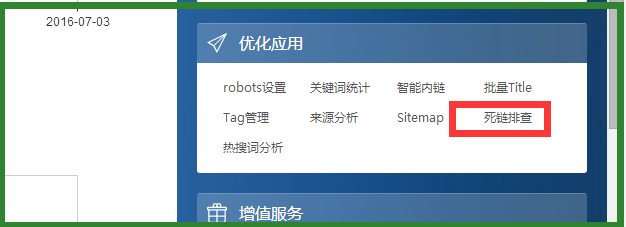 驗證后,進入“我的網站”,左側會出現相關列表信息。