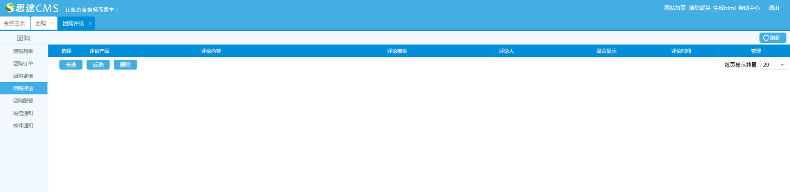 針對(duì)前臺(tái)團(tuán)購(gòu)產(chǎn)品詳情頁(yè)當(dāng)中,購(gòu)買該產(chǎn)品的用戶消費(fèi)完成的評(píng)價(jià)管理,評(píng)價(jià)管理在后臺(tái)可以審核,查看隱藏,刪除等。后續(xù)考慮支持管理人員在后臺(tái)新增評(píng)價(jià)。