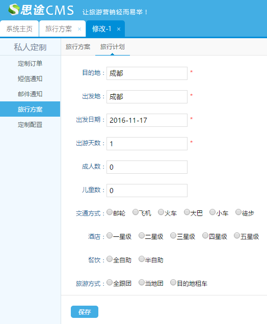 2、旅行計劃:包括目的地、出發地、出發日期、天數、人數和屬性