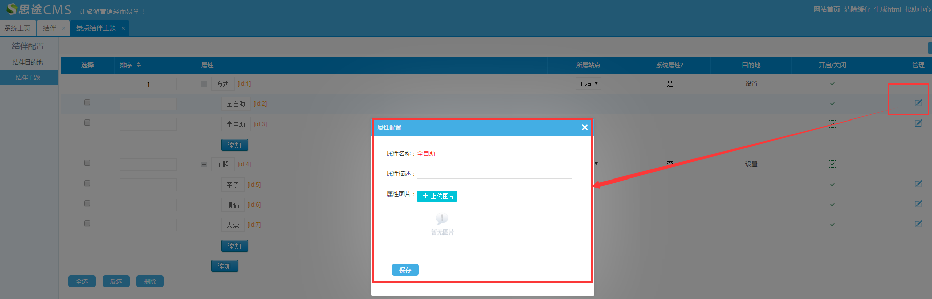(1)點擊管理,可設(shè)置主題屬性的描述和圖片