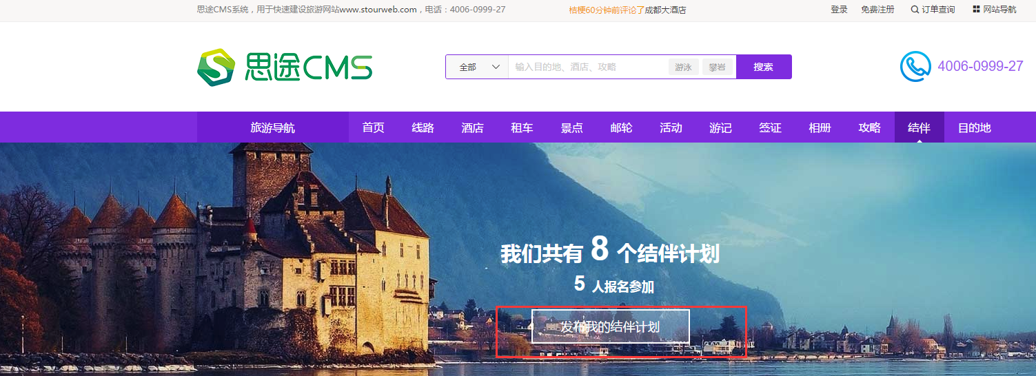 1、游客在結(jié)伴首頁點擊“發(fā)布我的結(jié)伴計劃”. 支持PC和移動端發(fā)布。