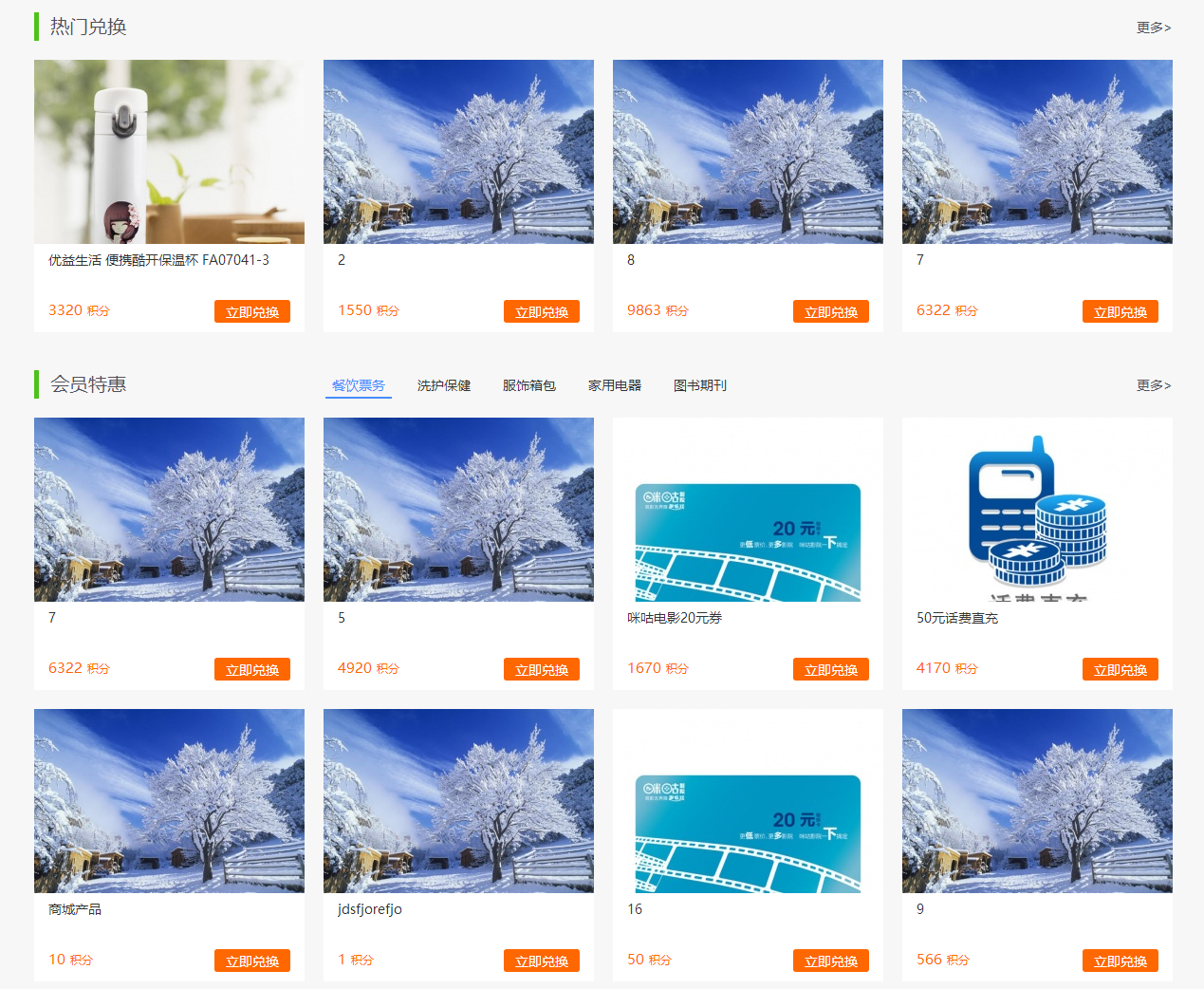 (1)熱門兌換:只顯示4個產品,支持后臺排序