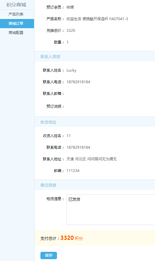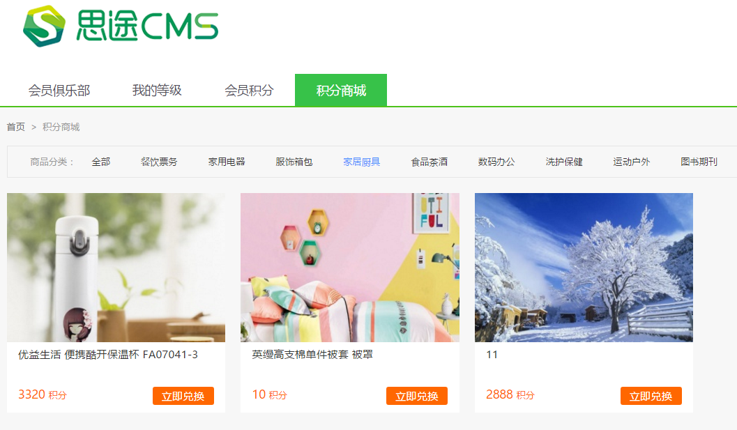 2、商城配置:用于商城所兌換產品的分類,僅支持一級