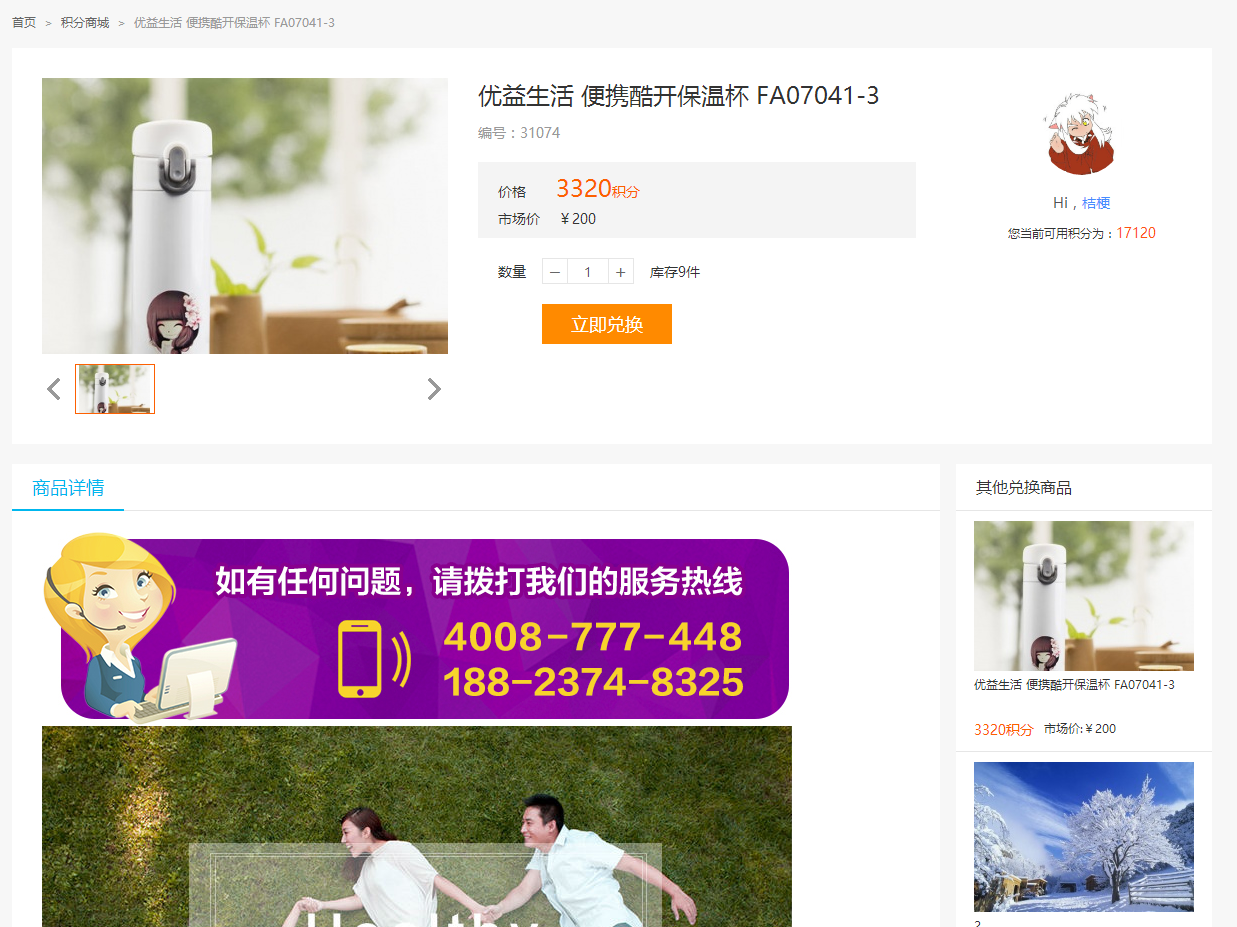 7、產品詳情頁:右下方的其他兌換商品顯示按照后臺排序設置展示