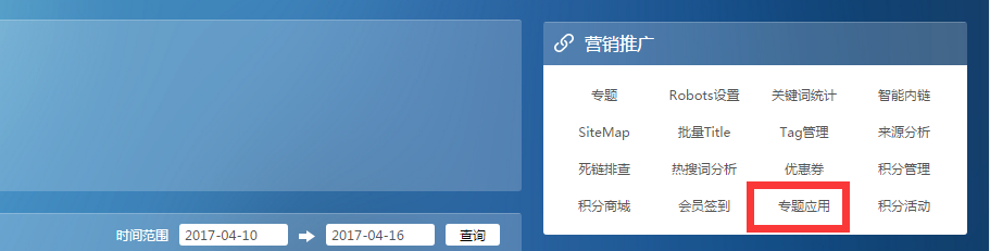營銷推廣》專題應用》管理》欄目內容