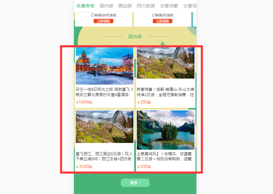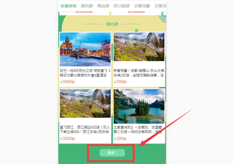 以上步驟操作完成后,專題頁面國內游板塊就會展示勾選的這幾個線路產品