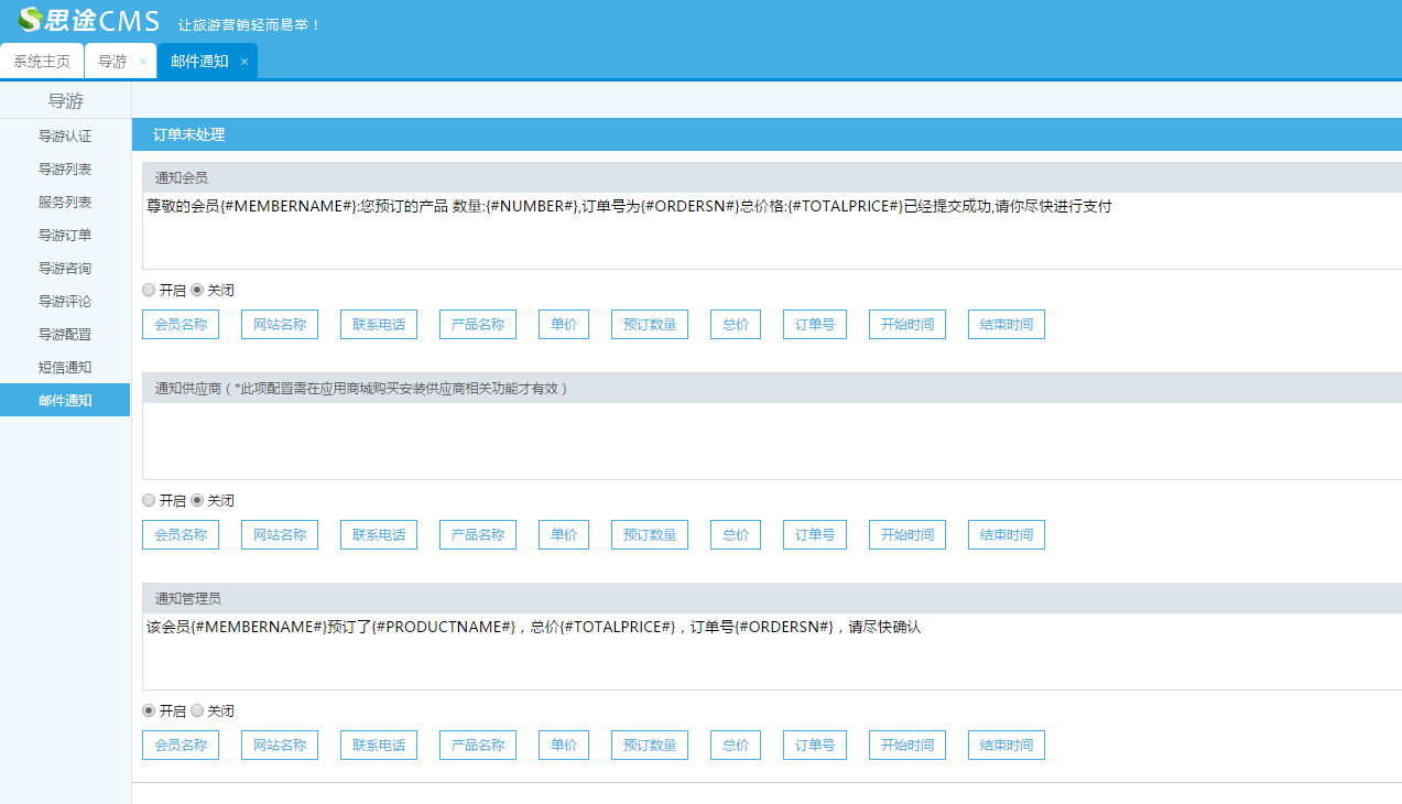 1、導(dǎo)游目的地:(全局目的地必須開啟,否則欄目下的目的地不會(huì)顯示出來(lái))