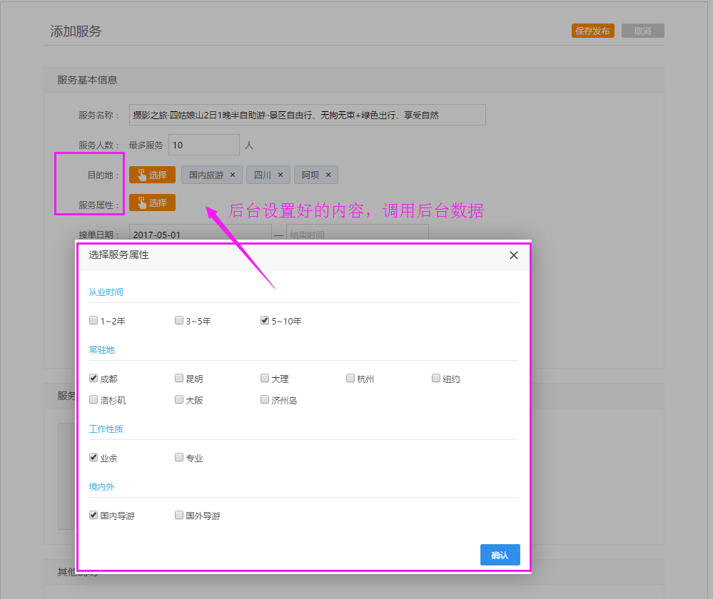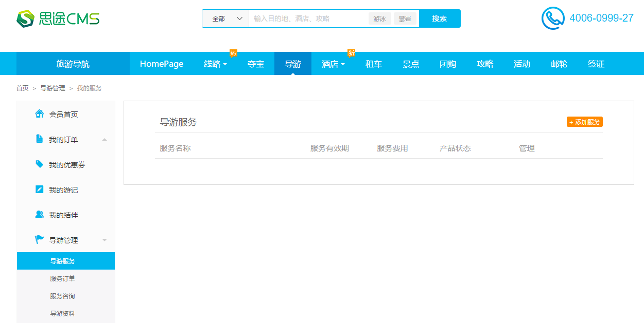 4、導(dǎo)游內(nèi)容介紹:服務(wù)圖片、服務(wù)詳情、預(yù)訂須知為固定內(nèi)容,可根據(jù)需要自定義添加