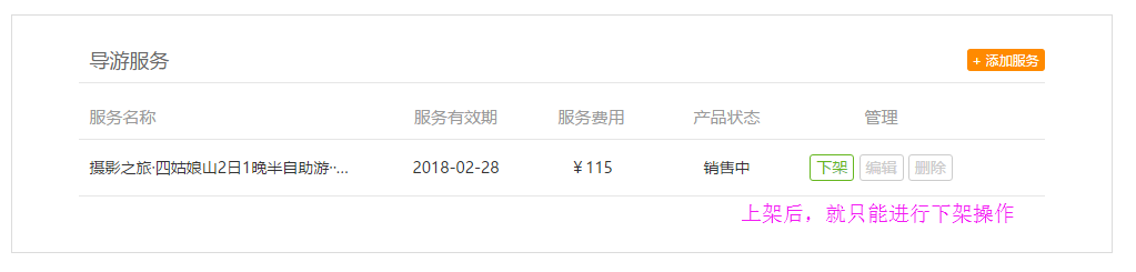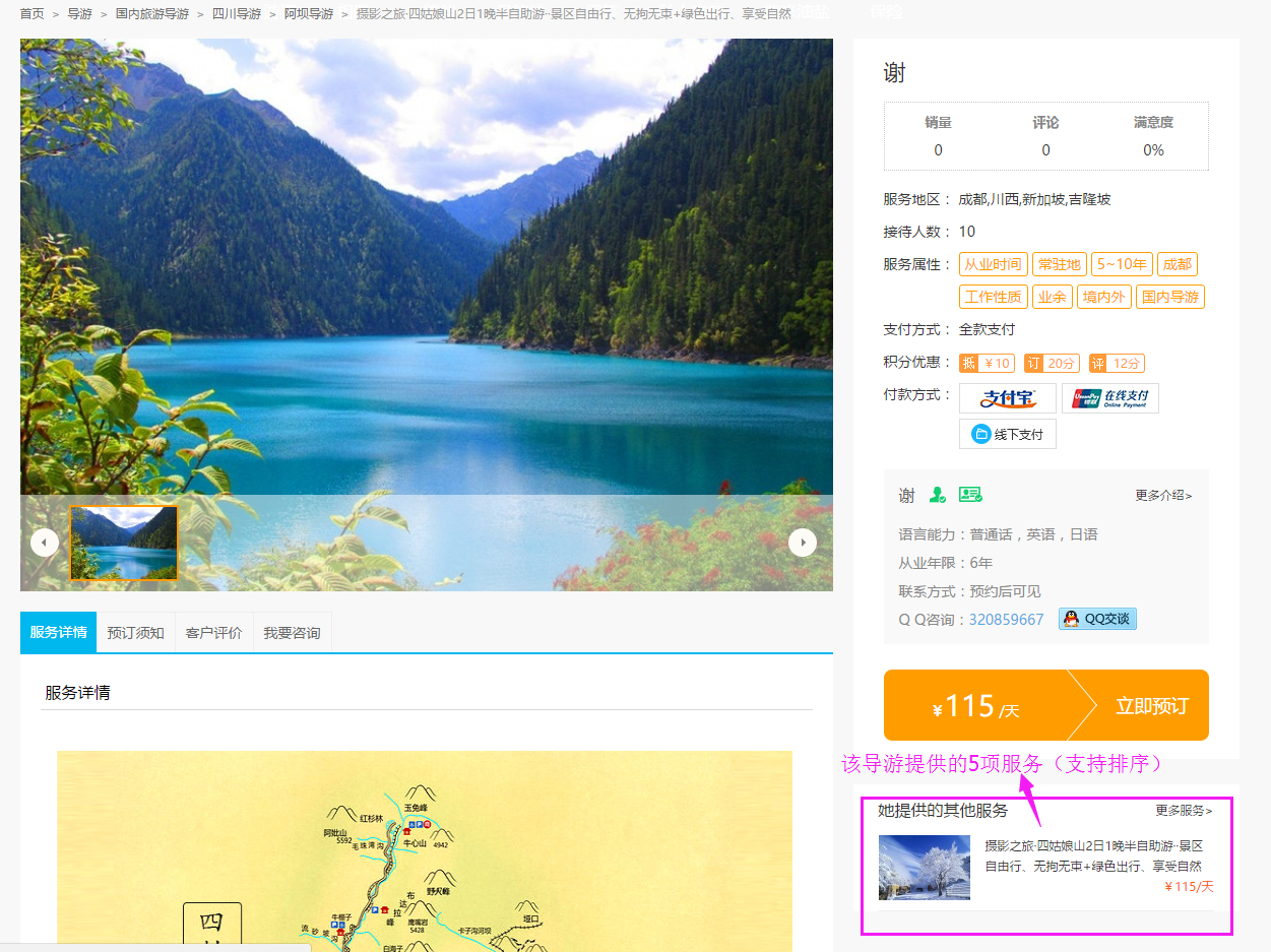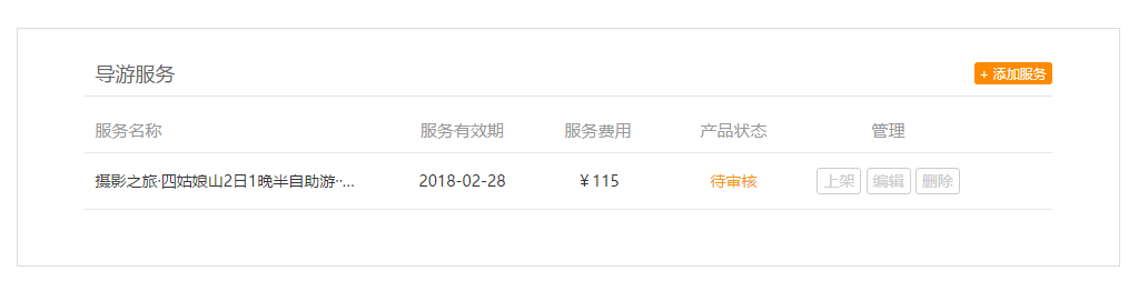 PS:上架后前臺(tái)可以看見(jiàn)該導(dǎo)游服務(wù)產(chǎn)品