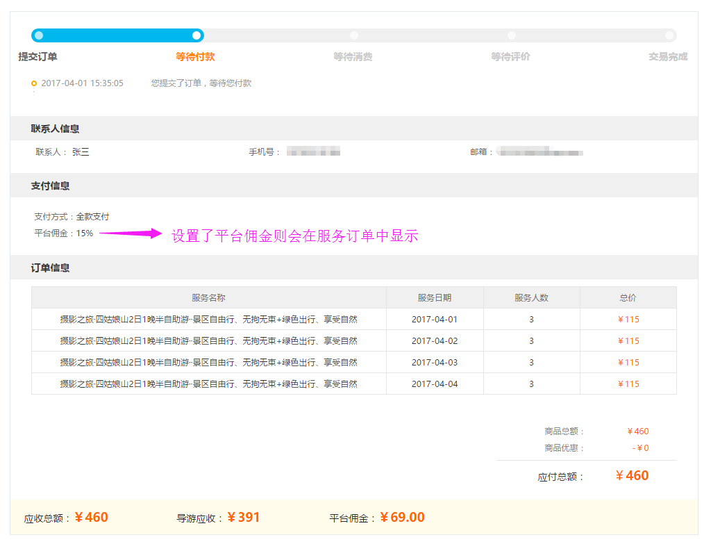 6、平臺(tái)傭金:導(dǎo)游服務(wù)產(chǎn)品銷售后,平臺(tái)的傭金