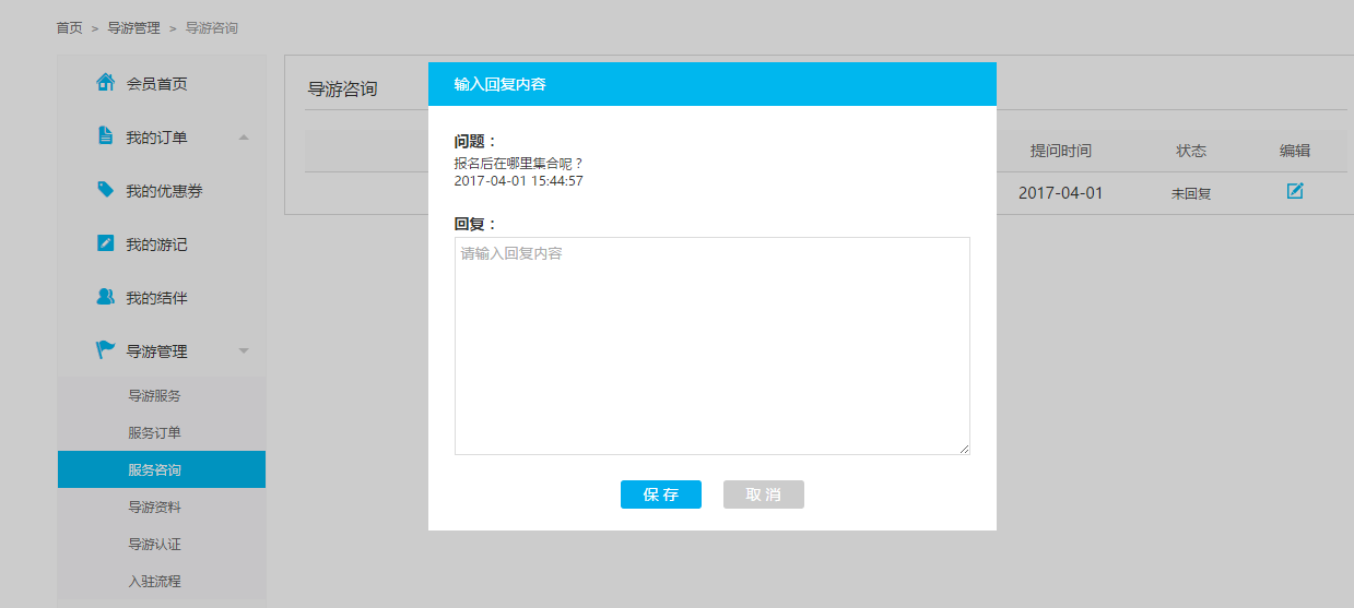 導(dǎo)游基本操作流程:安裝應(yīng)用》后臺(tái)配置》會(huì)員實(shí)名認(rèn)證》會(huì)員認(rèn)證為導(dǎo)游》發(fā)布服務(wù)》后臺(tái)審核》上架服務(wù)》可以銷售了
