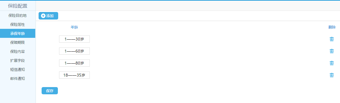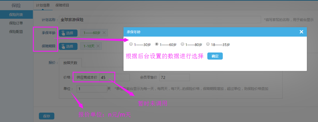 PS:后臺設置的承保年齡、保障期限、保險內容未列入篩選列表中