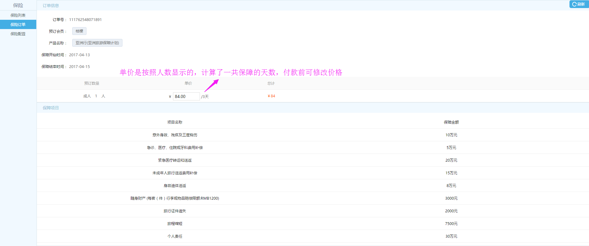 保險價格是按照線路的天數進行計算,再根據購買人數進行疊加