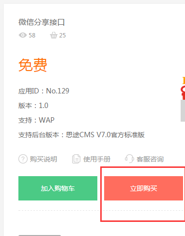 1.1在應用商城購買http://www.sccsfw.com/app/129.html,微信分享接口應用。