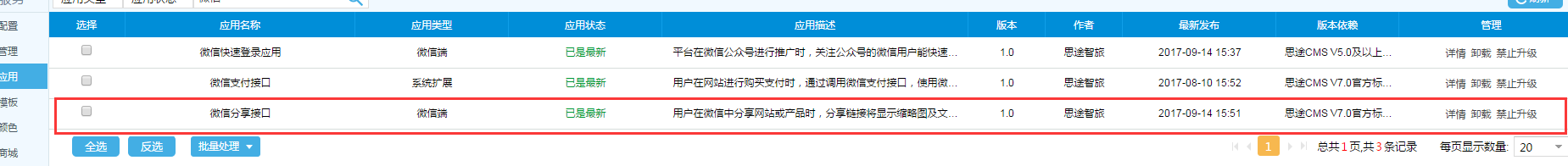 1.2在網站后臺-我的應用-安裝微信分享接口應用