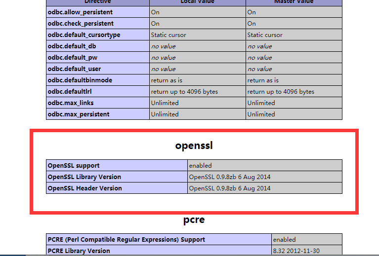 開啟openssl 后使用phpinfo()會顯示這個部分: