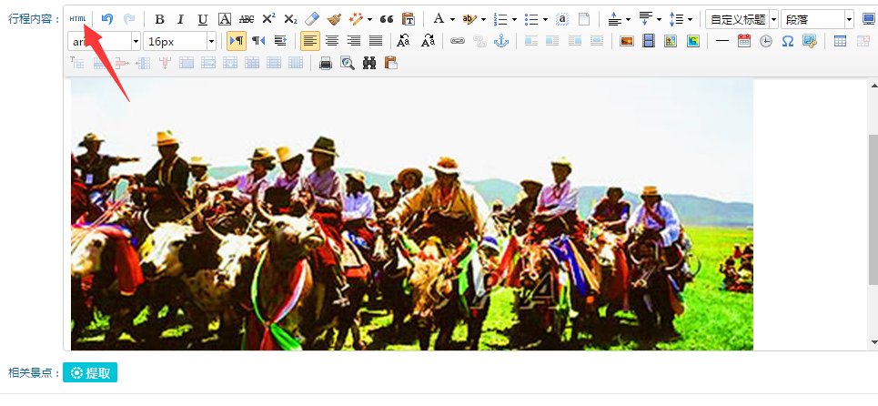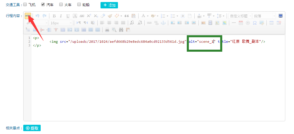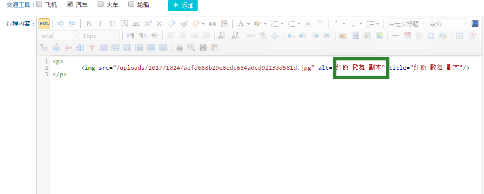 在編輯器插入上傳圖片后,點擊編輯器的html