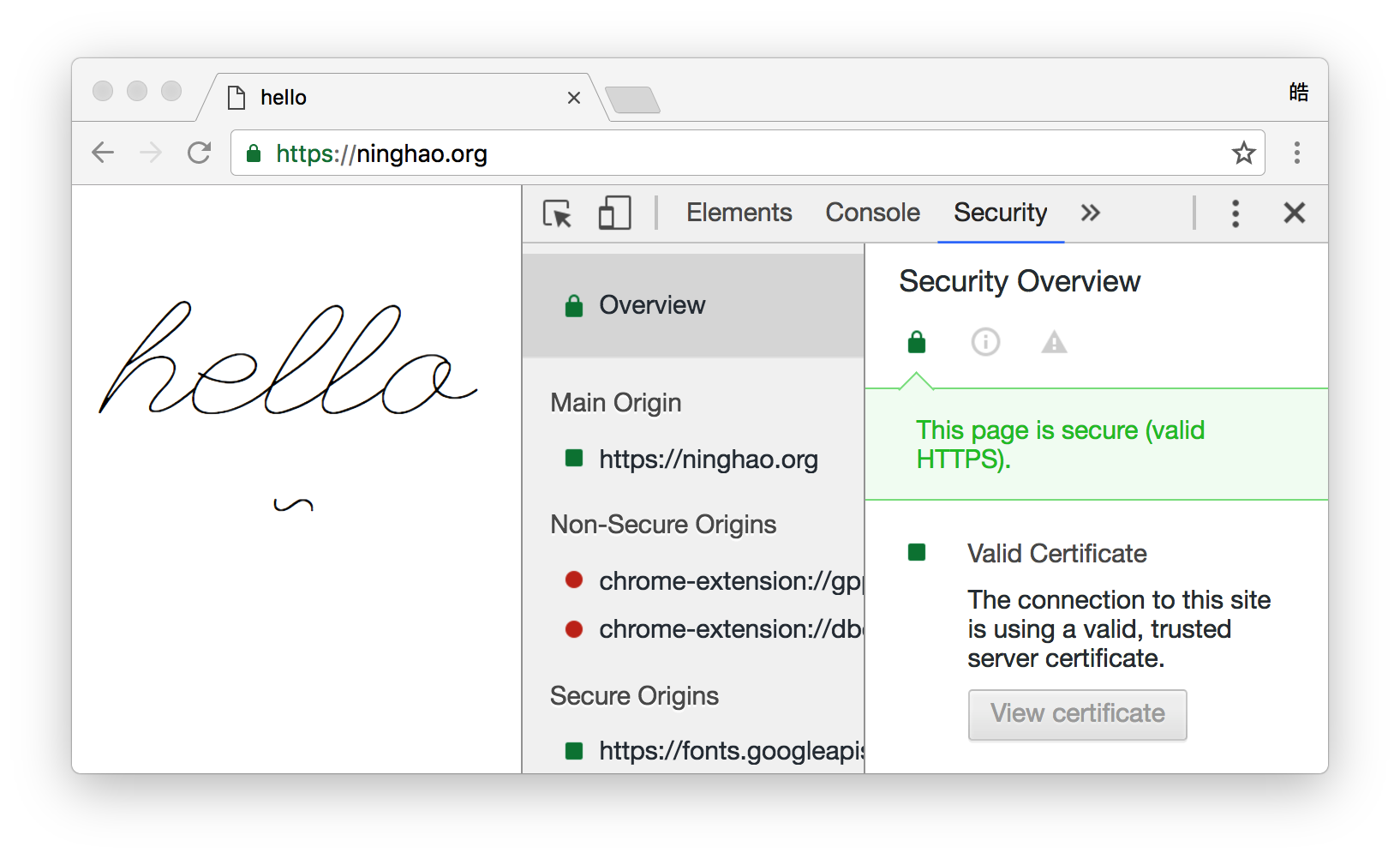 在瀏覽器上輸入帶 https 的網站地址:https://ninghao.org