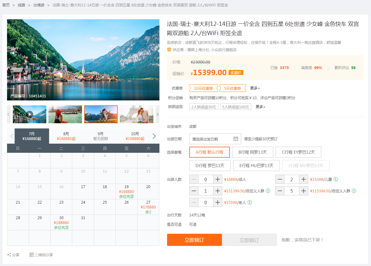 和途牛的做法一樣,新版的線路模板也將團期、優(yōu)惠促銷等信息放在了游客瀏覽頁面時第一眼就可以看到的顯眼位置,相比舊版的線路詳情頁,重點信息更加突出,也可以更好地起到促成轉(zhuǎn)化的效果。