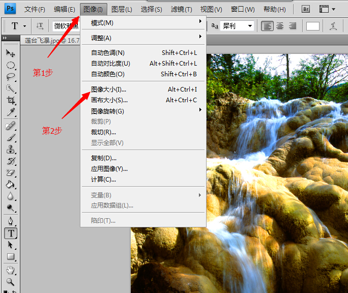 第1步,第2步, 點(diǎn)擊圖像選項(xiàng),選擇圖片大小設(shè)置