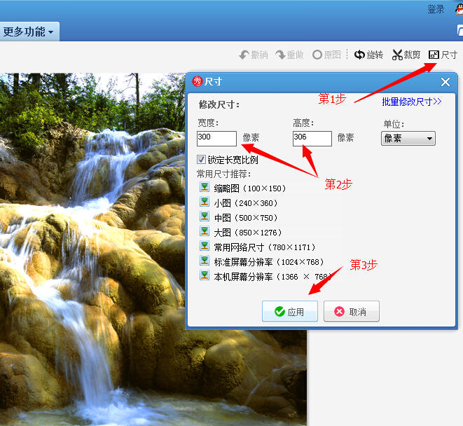 第1步,第2步,按網(wǎng)頁顯示需要,調(diào)整圖片尺寸