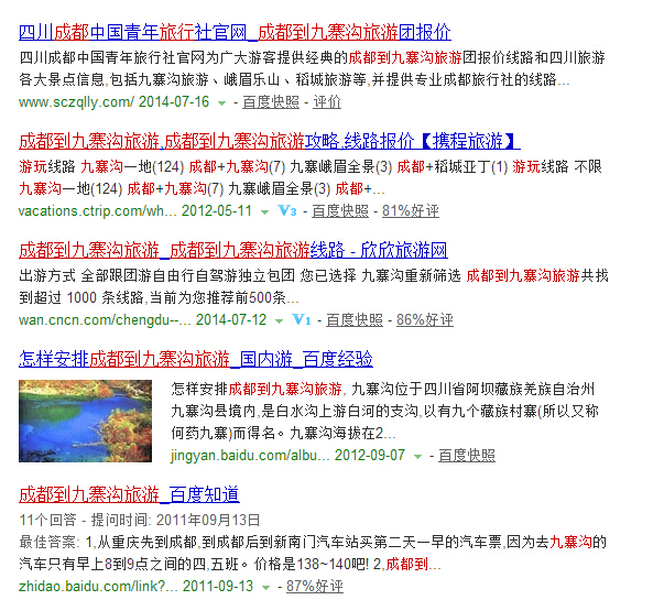 ②合理的鑲嵌關鍵詞:在描述的語句當中,一定要適當的出現關鍵詞2次到3次左右。此種做法更有利于搜索引擎對網頁的判斷,讓網頁排名更靠前,以下是排名在百度前四的描述舉例(飄紅部分為描述中的關鍵詞):