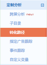 當我們設定了路徑類型的步驟轉(zhuǎn)化時,在百度統(tǒng)計網(wǎng)站報告定制分析中,有一個轉(zhuǎn)化路徑。