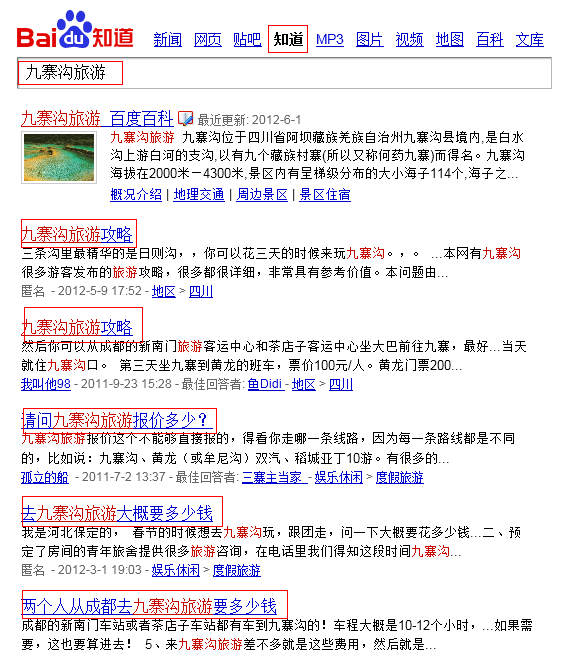 (1)關(guān)鍵詞加限定詞。例:九寨溝 與九寨溝旅游 四川九寨溝 九寨溝酒店 九寨溝攻略等。