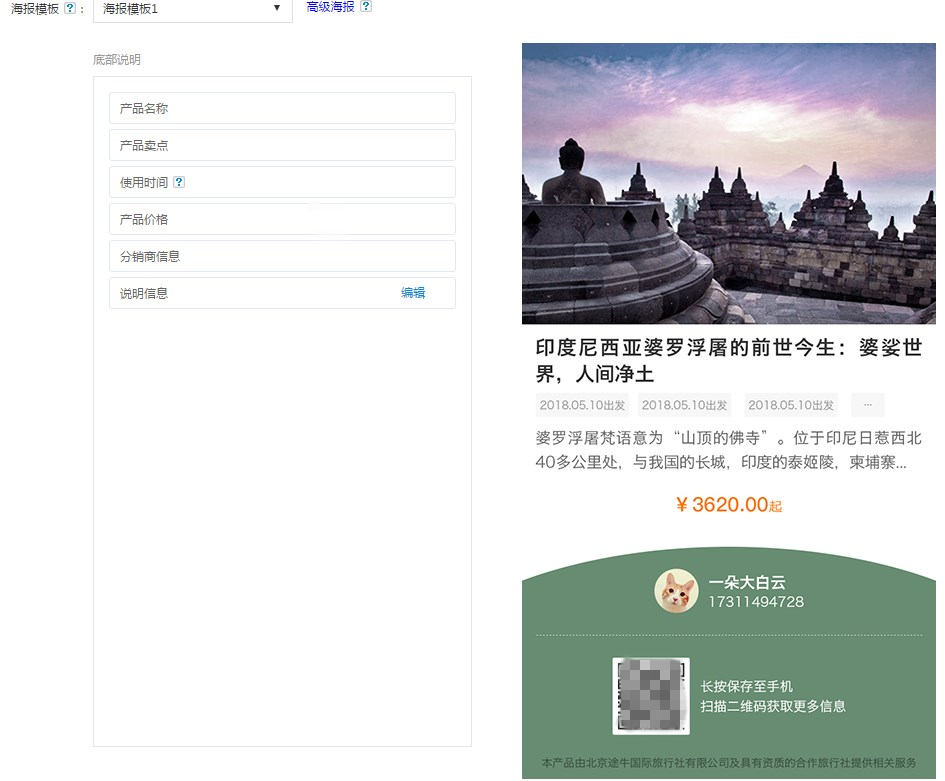 還記得思途在去年推出的分銷海報模板嗎?分銷海報對于在朋友圈、微信群推廣產品可起到了不小的助推作用哦!這次對于模板的樣式也再次做出了調整。我們發現有不少商家都喜歡使用分銷海報模板1,為了讓模板1兼具美觀和實用,思途對于模板1也增加了團期時間,已經更新的小伙伴,發現了這個小細節嗎?