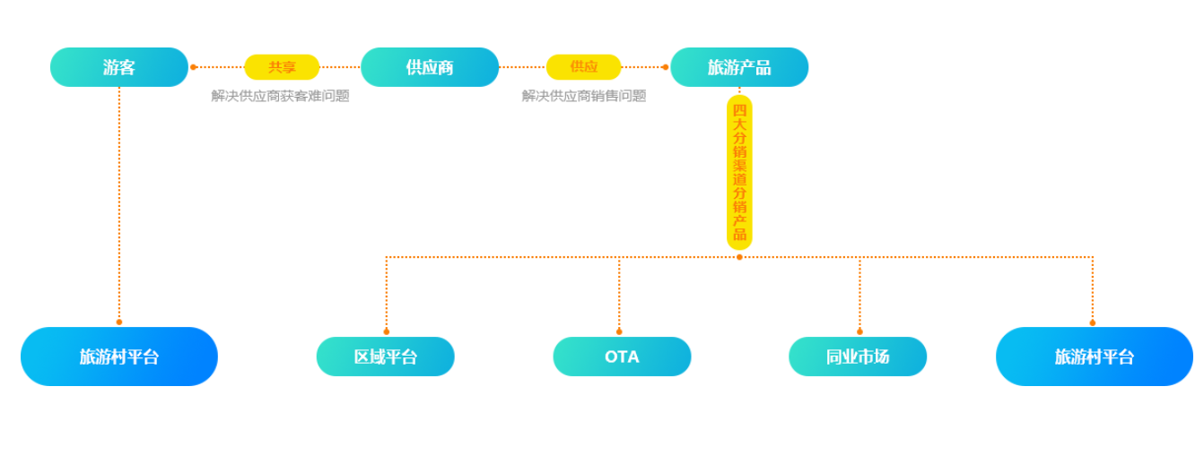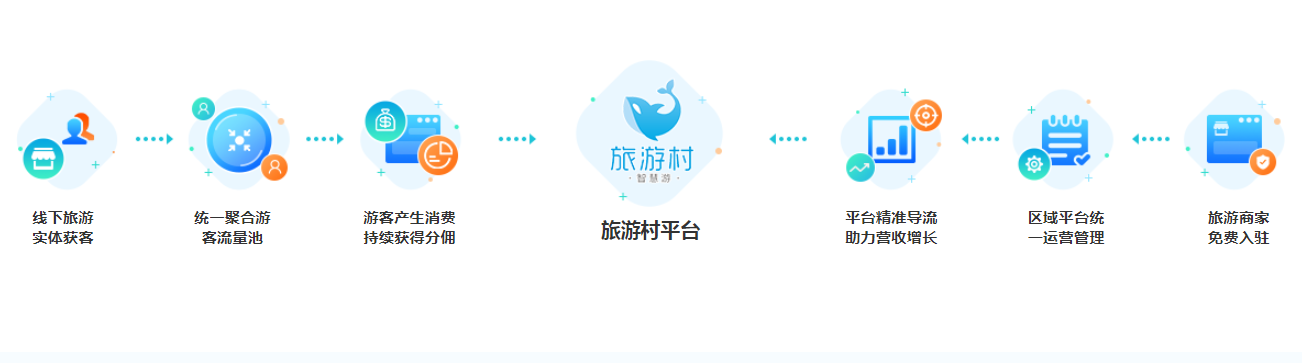 獨一無二的旅游村“實體獲客,共享游客”模式,打破了傳統旅游的區域限制,通過實體掃碼的方式將景區之間、區域之間孤立的流量島連接起來,聚集到旅游村游客池,統一進行管理、盤活、刺激、促進二次成交;共享的游客在平臺訂購產品,提供產品的旅游資源商可獲得銷售收入,共享游客的旅游實體也可獲得傭金收入。在這種模式下,不管是旅游實體還是產品供應商,通過共享游客消費力的方式,都可以實現從旅游村額外、高額、持續獲益。