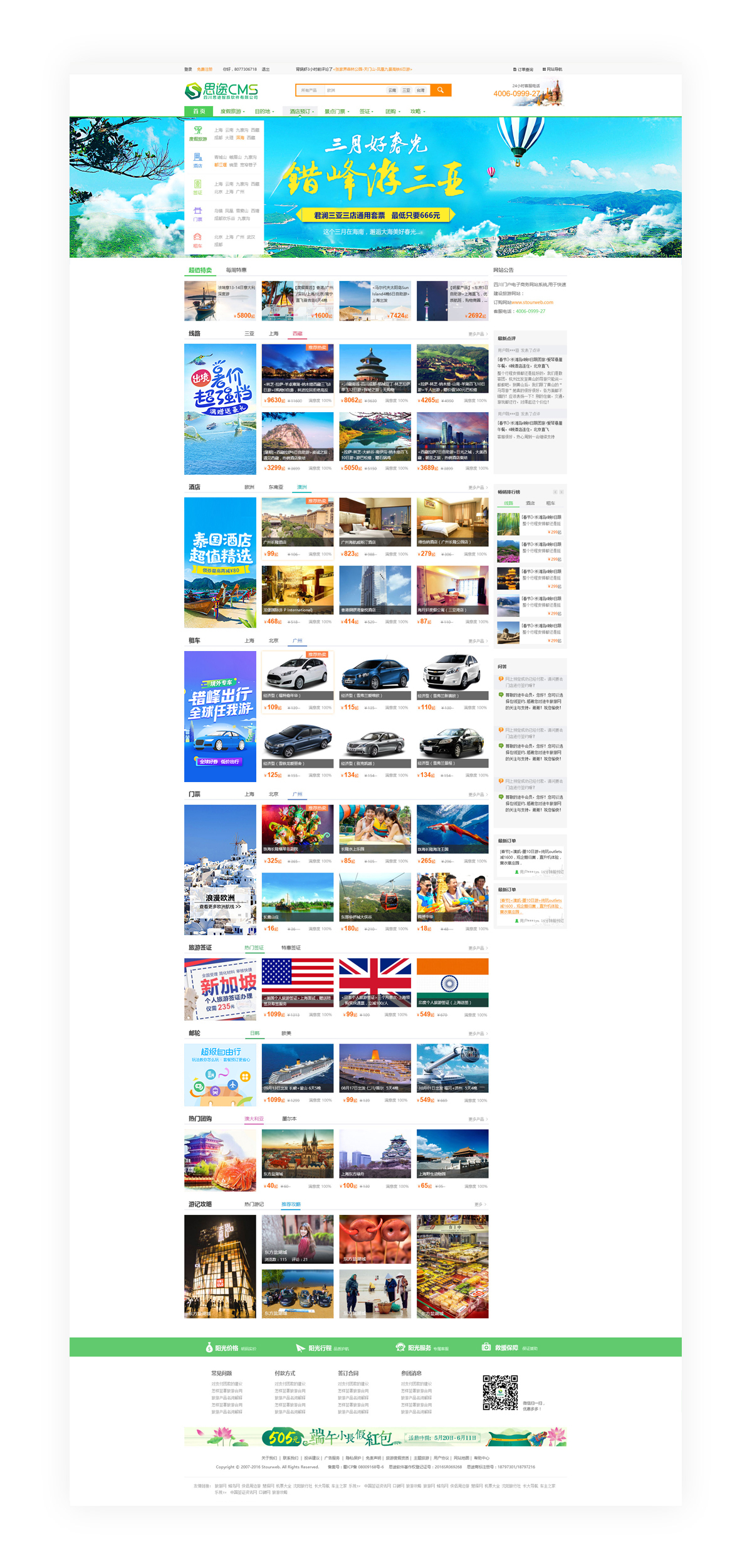 (網站首頁)本套主流門戶首頁模板產品功能齊全,分類清晰,排列美觀,具有良好的網站用戶體驗,能夠滿足綜合門戶類旅游電商網站使用。網站首頁可根據業務需要添加展示廣告,提升網站吸引力和用戶關注度,有效提高游客的停留與轉化。本套門戶首頁模板,是綜合門戶類旅游電商網站主流之選。* 該模板自定義導航不支持后臺關閉功能,右側僅支持效果圖上模塊。*該模板不支持換膚。